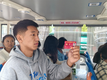 退役大学生杨蛟作为第一个享受此政策的乘客,他激动地说到:“这不是一块钱的事,这是我作为军人的荣耀,也真正感受到了学院对退役军人的关心和关爱”。