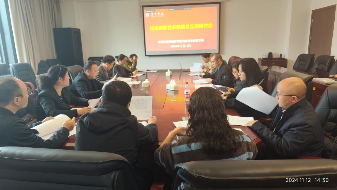 为推动科研成果反哺人才培养,创新学校实验教学内容,深化实验教学改革,培养高素质应用人才, 11月12日,教务处组织召开了创新性实验项目申报研讨会。教务处处长柳福提、校内专家、拟立项校级项目的负责人及教务处相关人员参加会议。会议由教务处副处长张国平主持。