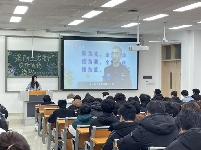 “课前3分钟”反诈宣传活动通过观看学生涉“两卡”典型案例视频的形式开展,内容涵盖网络刷单、冒充公检法、交友诈骗等案例剖析,生动直观地揭示各种类型的诈骗手段。全校累计播放407场次,参与人数25672人,切实提高了学生的防骗意识和能力,有利于构建坚固的校园反诈“堡垒”。