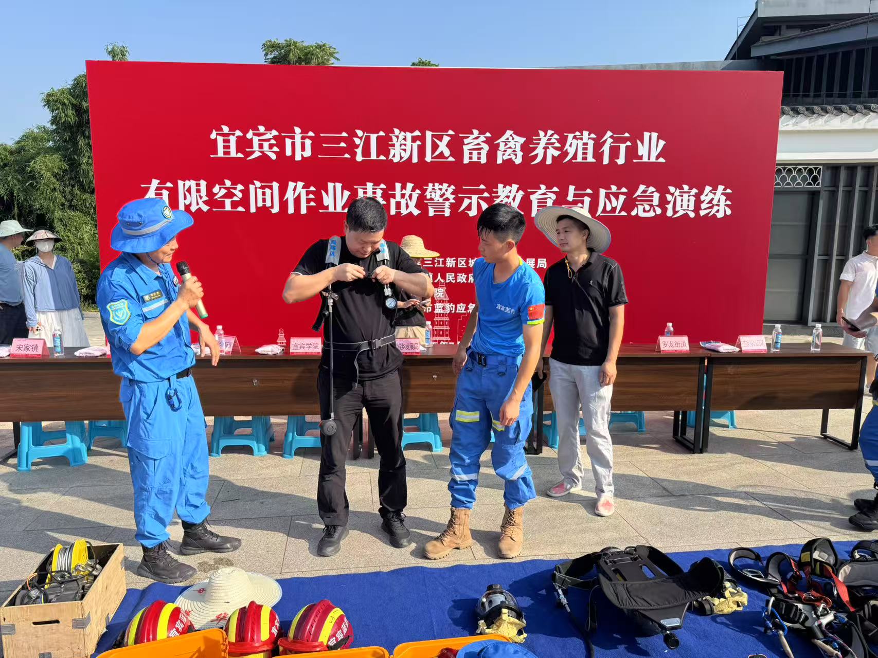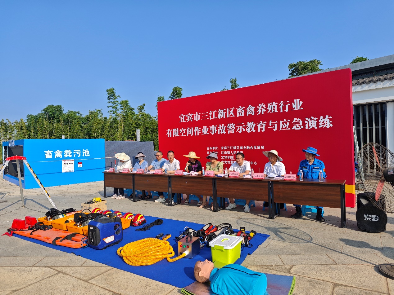 7月17日上午,由我校承办的三江新区畜禽养殖行业有限空间作业事故警示教育与应急演练在三江新区江南镇举行。三江新区城乡融合发展局副局长何德芬、新区各乡镇畜禽养殖分管领导及 30 余户畜禽养殖业主参加活动。