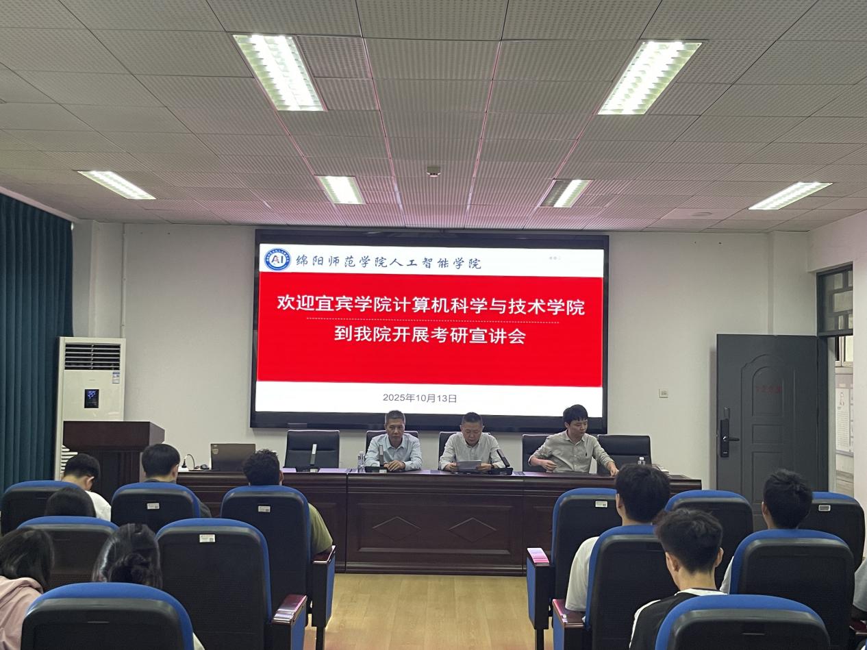 为切实推进宜宾学院首届电子信息硕士点招生工作,积极拓展优质生源渠道,提升硕士点知名度与影响力,10月13-15日,宜宾学院计算机科学与技术学院组建招生宣传团队,先后前往绵阳师范学院人工智能学院、成都东软学院计算机与软件学院、阿坝师范学院计算机科学与技术学院及内江师范学院人工智能学院等四所高校的相关学院,开展为期三天的招生宣传与交流合作活动。