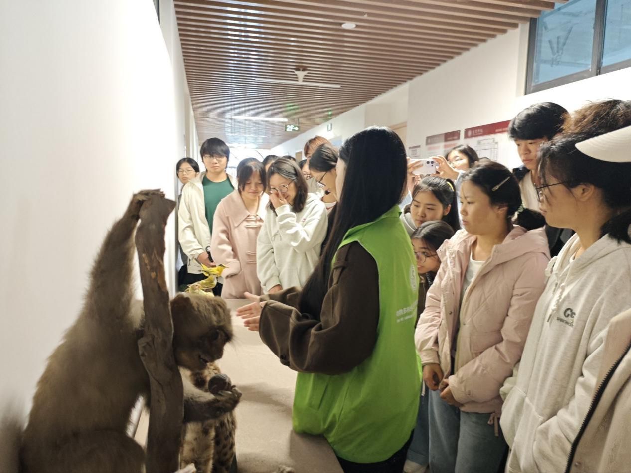 室、科普知识讲解和竞答等方式开展。活动伊始,同学们走进动物多样性与生态保育宜宾市重点实验室,实验室老师向同学们介绍了野生动物生物安全基本概念、常见的人兽共患病类型、外来有害生物的防控、野生动物疫源疫病防控等知识,并带领大家参观精密的检测仪器以及救助的野生动物,并强调“不接触、不投喂、保持距离并及时上报”的安全防护原则。讲座过程中,实验室科研人员以丰富的图片和视频资料,重点介绍了禽流感、狂犬病、布鲁氏菌病等常见野生动物疫病的病原体特性、传播途径,同时详细讲解了日常生活中防范野生动物疫病的具体措施。此外,在志愿者的带领下,通过动物科普图片展、实物标本展示及互动问答,生动讲解珍稀动物的形态特征与保护价值,现场互动氛围十分热烈。