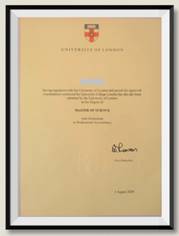 伦敦大学专业会计硕士文凭及教育部学历学位认证书