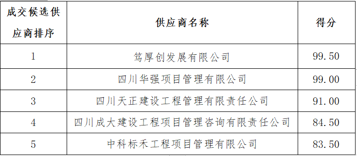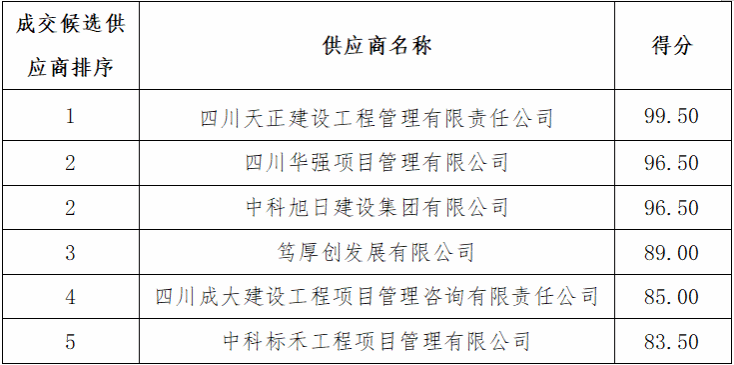 成交供应商名称:四川天正建设工程管理有限责任公司。