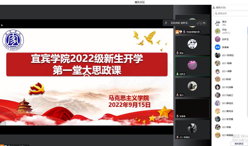大学是一个新起点新征程,为使2022级新生更快转变角色,适应新环境,引导学生明确人生奋斗方向,制定合理规划,9月15-17日,马克思主义学院开展新生线上入学教育,主要包括第一堂大思政课、学习习近平总书记来川来宜来校视察重要指示精神、校史校情、学院发展历程、安全文明健康成长教育、专业教育、励志教育、奖勤助贷政策解读、班级管理建设等内容。马克思主义学院党政领导干部、学工办相关老师、辅导员和2022级新生参加了本次新生入学教育。