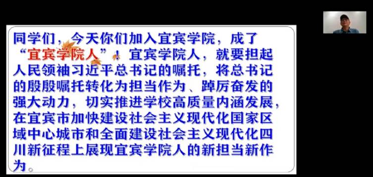 讲座结束时,吴教授勉励同学们不负时光,不负自己,不负韶华。2022级新同学们纷纷在弹幕上表示:“今日我以宜宾学院为荣,明日宜宾学院以我为傲。”
