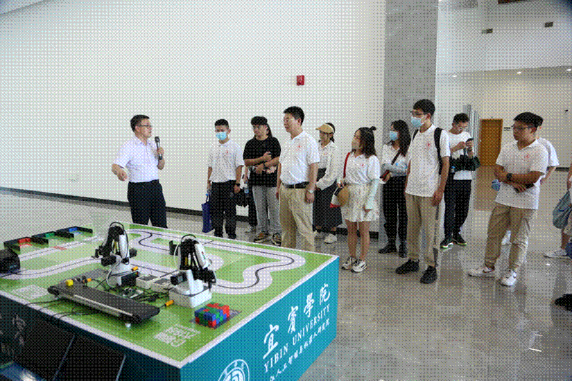 在求实会堂,四川大学实践团师生参观毕业生就业情况展台、模拟垃圾智能分类运输机器人展台、智慧农业物联网监控系统、油樟创新展区、就业创业指导服务展区、招聘会会场,关注了解宜宾学院学生自主创新、毕业生就业、人才培养等情况。