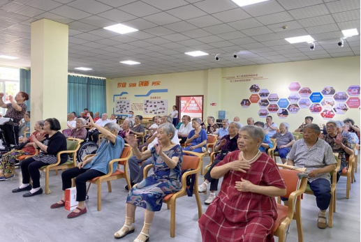 实践团队走进宜宾市社会福利院,以党史学习教育与表演节目有机融合的形式,举办了“情系福利院·温暖老人心”文艺演出活动。活动中,老人们一起做《感恩的心》手语操,宜宾市盲人协会副主席、翠屏区盲人协会主席黎洪倾情演唱原创歌曲《守家人》和《七月的弦》,大家一起唱响《草原上升起不落的太阳》《东方之珠》《歌唱祖国》等歌曲。