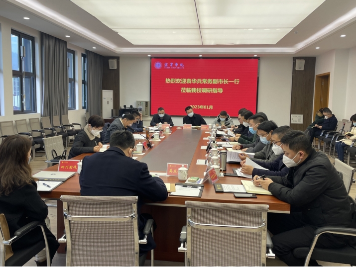 1月12日下午,市委常委、常务副市长袁华兵,市政府副秘书长惠德宏,市委组织部副部长、市委人才大学城局局长谢飞,市人力资源社会保障局党组书记、局长李小林,市政协农业农村委副主任、一级调研员张晓丽,市人力资源社会保障局党组成员、市就业创业和农民工服务中心主任甘华锋一行调研宜宾学院。学校党委副书记、院长杜正聪,党委常委、副院长周广均陪同调研。宜宾市高校毕业生就业创业工作座谈会在农林学部会议室召开。袁华兵主持会议。