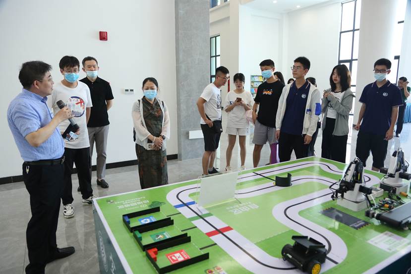 在周广均陪同下,清华大学师生一行参观临港校区。在求实会堂,大家参观毕业生就业情况展台,模拟垃圾智能分类运输机器人展台、智慧农业物联网监控系统、油樟创新展区、就业创业指导服务展区、招聘会会场,关注了解宜宾学院学校生源、专业设置、毕业生就业、人才培养等情况,以及宜宾学院产学研结合、研究型人才促进产业发展等相关情况。